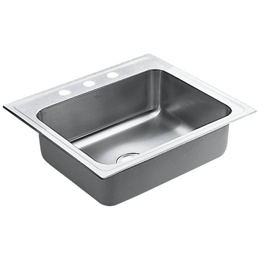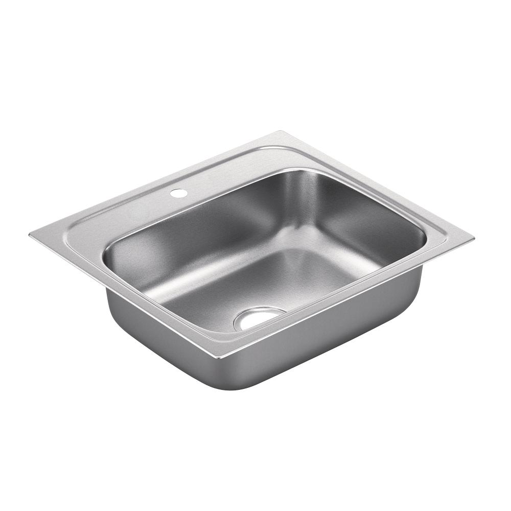 MOEN 2000 Drop-In Stainless Steel 25 in. 3-Hole Single ... from images.homedepot-static.com Moen 1800 series 33 x 22 in. Touchless smart technology now enhances 11 popular moen collections. When making a selection below to narrow your results down, each selection made will reload the page to display the desired results. It has a rating of 4.7 with 79 reviews. The kindred essentials kitchen sink has a single bowl and can be used in a motorhome, laundry room, bar, or utility room. Moen 2200 series 22 gauge single bowl drop in sink designed to withstand heavy use in any kitchen, the moen 2200 series 22 gauge single bowl drop in sink combines dependable performance with a timeless design. As the #1 faucet brand in north america, moen offers a diverse selection of thoughtfully designed kitchen and bath faucets, showerheads, accessories, bath safety products, garbage disposals and kitchen sinks for residential and commercial applications each delivering the best possible combination of meaningful innovation, useful features, and. Single bowl undermount kitchen sink with 9 in.