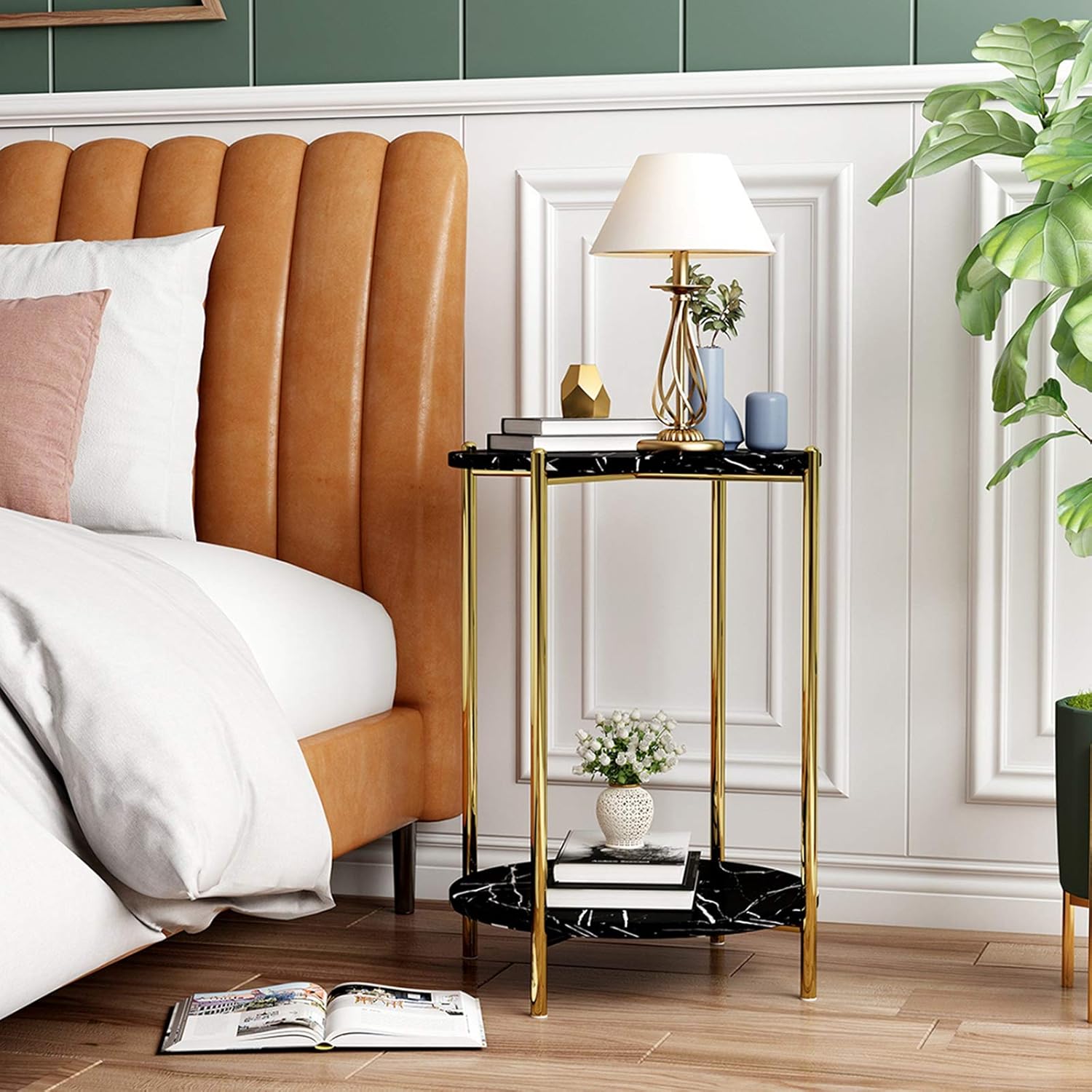Convenience concepts designs2go classic glass 2 tier round end table. Many people prefer to have a night stand that's about the same height as their mattress for easy access. A few of our bedroom patterns feature larger nightstands that provide ample storage room. Complete your bedroom with nightstands and bedside tables that offer a convenient perch for a lamp, alarm clock and reading material. Most items come with a limited manufacturer's warranty.